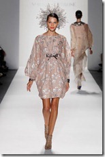 I soon got my answer with the pouring in of heavy metals. Since his inspiration was drawn from the sun glistening like diamonds on the Mediterranean sea I suppose metallics make sense. From Pewter to Gold to Silver and Copper – Norman Ambrose had metallic covered. Perhaps in a similar manner to Rachel Zoe’s presentation it was about “Glamour by Day” as even trouser suits and separates were all about the shine. Given the impeccable fit and tailoring I don’t see any reason not to shine in these clothing. Although Norman Ambrose is still a young designer, he trained with a both master patternmaker and a master tailor (who logged time with Cristobal Balenciaga and Bill Blass) before launching his collection and it paid off.